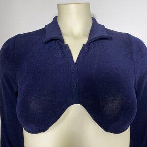 MIRROR PALAIS Navy Jersey 'Underwire Polo' Crop Long Sleeve Top