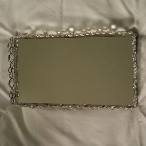 Gorgeous glass tray with metal ball feet. Crystals on all sides. Looks amazing on a dresser with wine decanter and wine glasses for your 5-star guests.😍