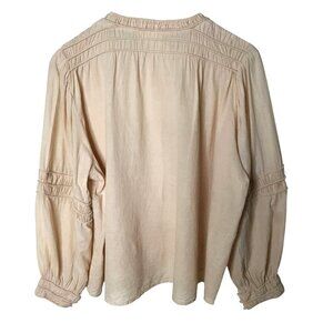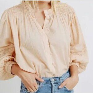 MIRTH Beirut Peach Button Blouse M Boho Artisan Luxe Balloon Sleeve Cotton Top