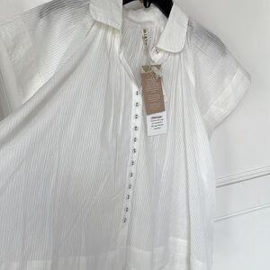 MIRTH Kerala Short Sleeved Blouse Button Down White Pinstripe Women's Size XSMALL NEW NWT