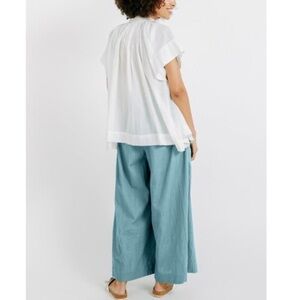 Pintucked details make this short sleeved top extra special and the abundance of buttons add to the detail. Tucked in or out, this is a blouse that pairs well with almost anything. It is slightly sheer and made of a lightweight and soft cotton voile with a subtle stripe.