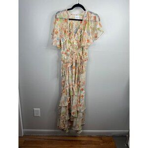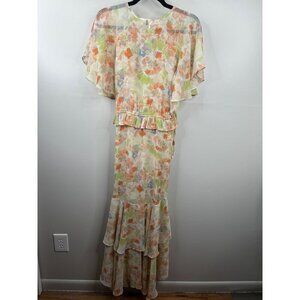 MISA Alana Floral Flutter Maxi Dress Chiffon Size XS NWT in Pastel Splash