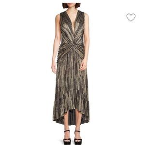 MISA LOS ANGELES Ava Plunging Gold Twist Maxi Dress