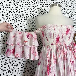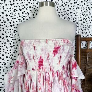 MISA | Dina Floral Ruffle Bell Sleeve Off Shoulder Flowy Revolve Mini Dress M