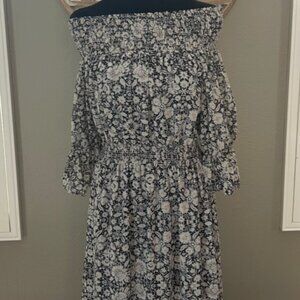 Features: Smocked bodice, off-shoulder neckline, midi length