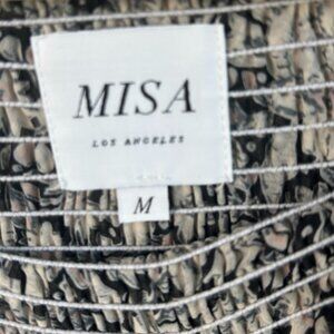 Float into effortless elegance with this MISA floral smocked off-shoulder midi dress in chic black and gray tones. With its boho-inspired silhouette, smocked bodice, and flowy skirt, this size M beauty is perfect for brunch dates, beach strolls, or twirling into golden hour.