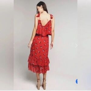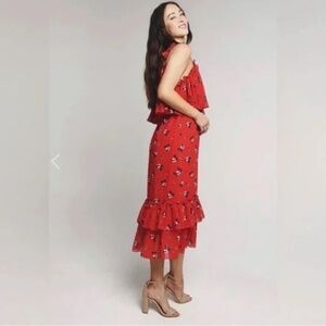 MISA Gracy Midi Dress Ruffle Tiered Red Floral 31734