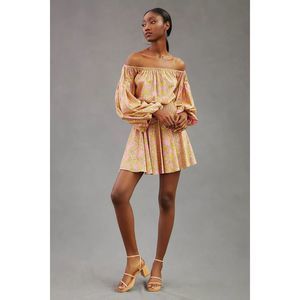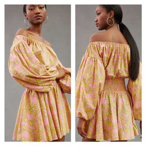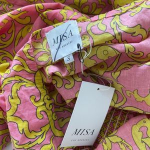 MISA JORDANA DRESS Smocked Waist Mini off the shoulder Dress Size Small
