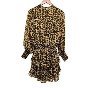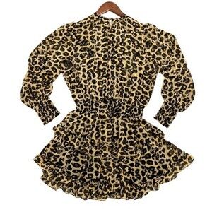 New with Tags MISA Los Angeles Katia Leopard-Print Ruffle Skirt, Long-Sleeve Dress Women’s Size XS