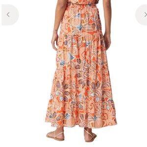 Roopal is a breezy new take on our classic maxi skirt silhouette. Cut from a vibrant floral cotton, this tiered silhouette features a partially elastic waistband leading into a covered button front skirt.