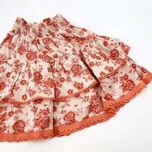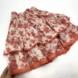 MISA LA Pink linen Blend Estie Floral Tiered Skirt