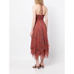 MISA LOS ANGELES Adele Paisley Halter Handkerchief Hem Dress Midi Layered Large