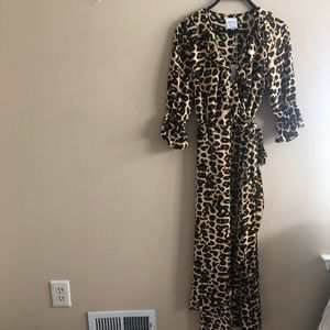 Belinda wrap dress, romantic style elements in striking leopard print (Misa Cat)