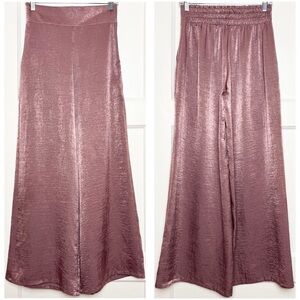MISA LOS ANGELES Blush Hammered Satin Viscose High Rise Wide Leg Palazzo Pants S