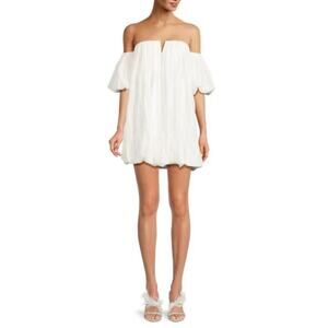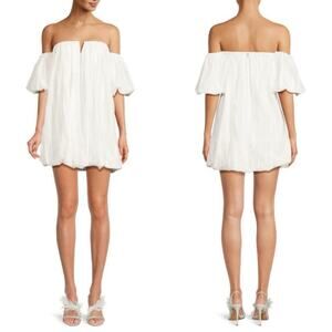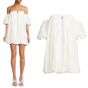 MISA LOS ANGELES Cosima Off Shoulder Mini Dress White Silver Cotton Small NEW