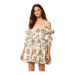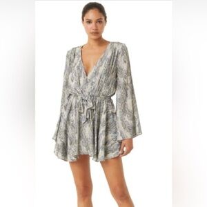 MISA LOS ANGELES Domino Tie Front Mini Dress Peach Knot Front Ruched Small NWT