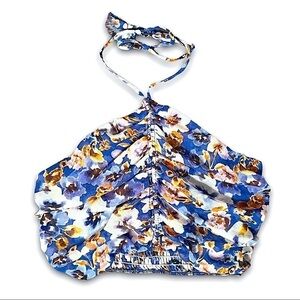 MISA LOS ANGELES Floral Ruched Smocked Sleeveless Halter Neck Chiffon Crop Top M