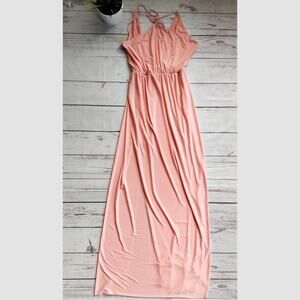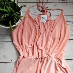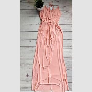 This is a stunning Misa Los Angeles "Nola" maxi dress in size S. Sold out at Revolve. Double split. Tie back. Blush pink. In excellent, gently used condition. Measures approximately 55" in length.