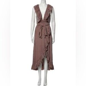 MISA LOS ANGELES Pinstripe Velvet Ruffle Wrap Dress Size SM - Rare hard to find!