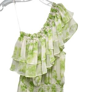 MISA LOS ANGELES Rumi One Shoulder Midi Dress Green White Honeydew Blossom Small