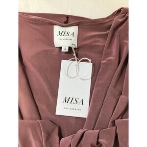 MISA LOS ANGELES SZ S Mauve Teget Twist Knot Long sleeve V-Neck Dress NWT 0B14