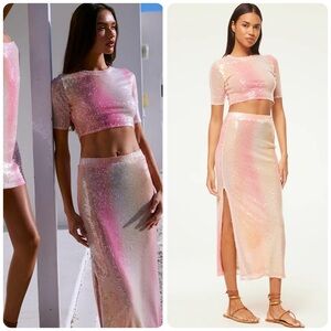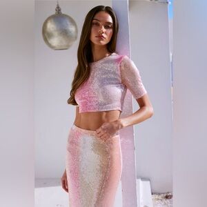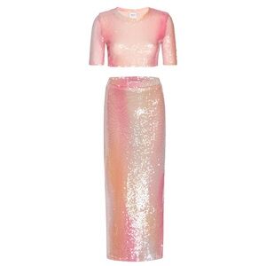 MISA LOS ANGELES Set Love Top & Aisha Skirt, Sequin Pink Ombré, XS