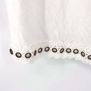 MISA Linen Blend Midi Skirt Lace Grommet Trim Paper Bag Stretch White Small
