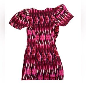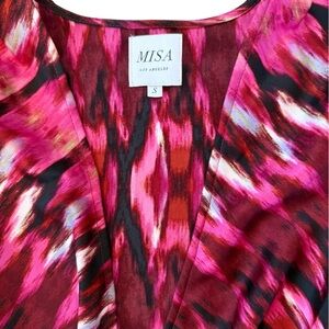 MISA Los Angeles Amina Ikat Print Wrap Mini Dress Small Pink Burgundy EUC