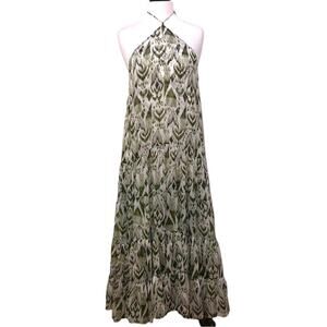 MISA Los Angeles Andromeda Dress Green Spring Ikat Print Large NWT