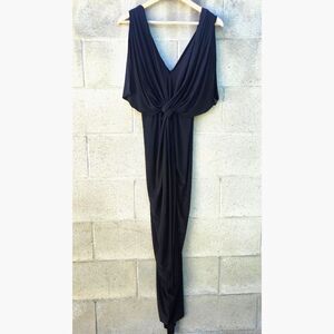 MISA Los Angeles Black Draped Long Maxi Dress | Flattering Elegant Style Size M