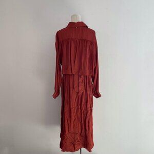 MISA Los Angeles Blair Dress in Burnt Orange | Long Sleeve Belted Midi | Size Small |
