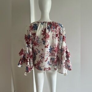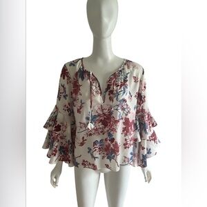 MISA Los Angeles Blouse Bell Sleeve Floral Print USA V-Neckline Ruffle Size S