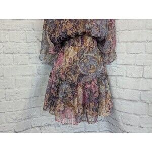 MISA Los Angeles Callas Batik Print Chiffon Minidress Keyhole Front & Back Sz Sm