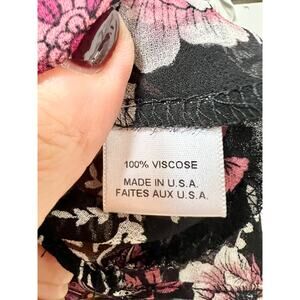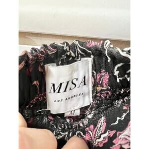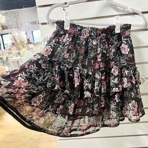 MISA Los Angeles Ceria Pull On Ruffle Tiered Mini Skirt Black Fuchsia Floral M