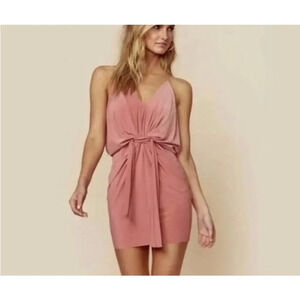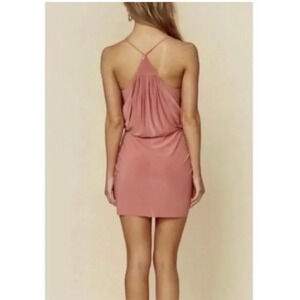 MISA Los Angeles Domino Draped Mini Dress in Peachy Pink Sz S