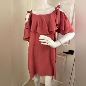 MISA Los Angeles Emil Off Cold Shoulder Coral Mini Dress Size Medium. #102