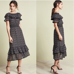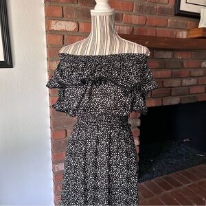 MISA Los Angeles Estefania Off-Shoulder Polka Dot Midi Dress in Black Sz XS