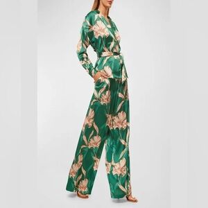 MISA Los Angeles Farah Floral Satin Long-Sleeve Wrap Top, NWT SIZE L