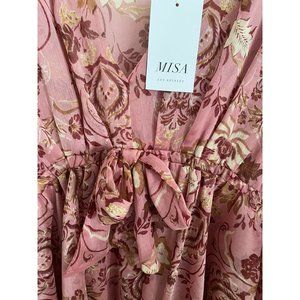 MISA Los Angeles V neck Cristobol Mirror Pink Ruffle Mini Boho S NWT $395