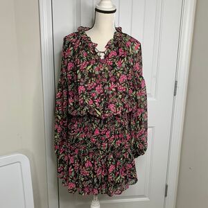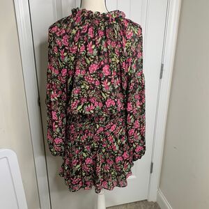 MISA Los Angeles Floral Long Sleeve Ruffle Mini Dress Pink boho summer Size M