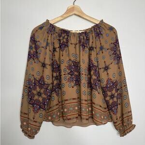MISA Los Angeles Francesca Off Shoulder Boho Top Small Tumeric Brown Blue Red