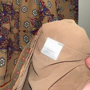 The MISA Los Angeles Francesca Top in “Tumeric Combo” is a beautifully detailed bohemian blouse loved by celebrities — as seen on Lucy Hale. Crafted in lightweight 100% viscose, this top features an elegant off-the-shoulder neckline, long billowy sleeves, and a relaxed silhouette for effortless wear. The earthy brown base is accented with intricate blue and red medallion prints and a bordered hem, giving it a chic, laid-back California feel. Pair it with denim, shorts, or a skirt for an instantly polished boho look.