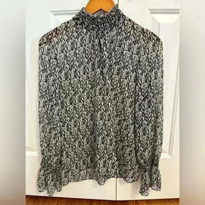 MISA Los Angeles Giana Smock Neck Top In Black White Snake Medium