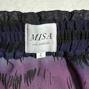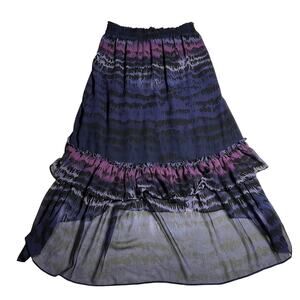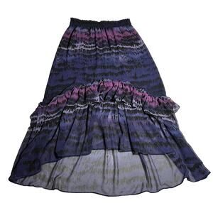 MISA Los Angeles High Low Sheer Tiered Maxi Skirt Size Large Abstract Print
