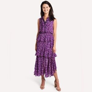Elegant purple dress with a floral pattern. Ideal for any event.