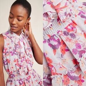 Flirty, feminine, and effortlessly chic—this MISA Imelda Mini Dress brings the charm of spring to any season. Cut from lightweight plum pink chiffon, the dress features a vibrant pink, lilac, and coral floral print with soft cascading ruffles at the shoulder and skirt for fluid movement. A smocked elastic waist offers a flattering silhouette, while the double-tiered ruffle skirt adds just the right amount of playful volume.