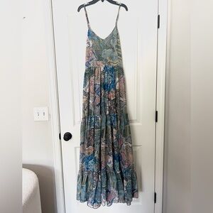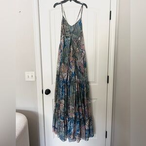 Multicolored printed chiffon (100% Polyester). Maxi. Sleeveless. V-neck. Pull on.