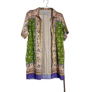 Multicolored (100% Polyester). Casual dress. Collared. Short sleeves. Button front closure