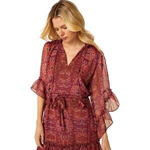 MISA Los Angeles Marcele Dress in Septima Tapestry Print Flowy Red Chiffon S