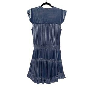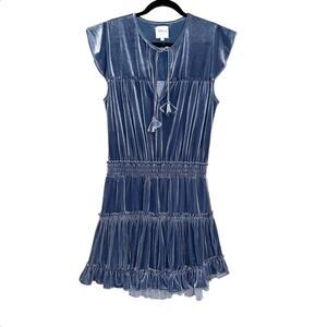 MISA Los Angeles Matias Blue Velvet Tier Mini Dress SMALL